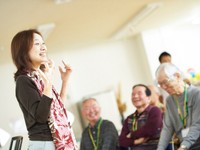 歌の合間には首や肩まわりのストレッチ、発声練習、呼吸法の練習も。徐々に体もほぐれたのか、参加者の声のボリュームも調子も上がってきたところで「サンタルチア」の歌唱レッスン。同じフレーズを繰り返します。