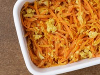 にんじんしりしりは沖縄の郷土料理。かつおだしを含ませて味をしっかりつけるので、冷めてもおいしく常備菜にもなります。にんじんは焦がさないように炒めて甘さを引き出しましょう。