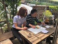 ここでも相手を思いやり、気遣うメンバーさんの気持ちが、姿や言葉に現れていました。その淹れ立てのコーヒーを片手にウッドデッキへ。室内より外の方が気持ちいいくらいの5月ですから。