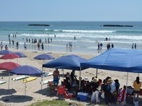 「夢と友情をつなげるサーフィンプロジェクト」と名付けられたこのイベントは今回で2回目です。堺市を拠点に活動する若年性認知症の人と家族と地域の支え合いの会「希望の灯り」などが主催。京都や大阪をはじめ、仙台や広島など全国各地、15府県から84人が参加。また、台湾からの視察やボランティアを含めると総勢約130人が集結しました。
