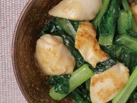 歯が丈夫な母は、脂質が少なく硬い鶏ささみ肉も喜んで食べてくれました。ささみに下味をつけているので、小松菜は味つけなし。にんにくの香りがきいた、噛めばかむほど味わいのある炒め物です。ささみが硬くて噛みにくい人は、鶏もも肉を食べやすい大きさに切って使ってください。