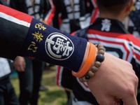 一生に一度あるかないかという晴れの日に、「上之町」の人々はほぼ全員オレンジリングを身につけて集まりました。また、地車を曳く人だけでなく、沿道で見守る人の中にもリングをした人を見かけることができました。