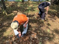という訳で、栗拾いに行ってきました!開始早々から次々に栗を拾うメンバーさん。始めは道具等がなく、素手で、いが栗に挑んでいくところがたくましい。その行動を見ていた若いスタッフメンバーは「痛くないんですか!?」と驚くばかり。