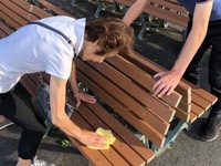 ・園内の内回り道路に設置してあるベンチの拭き掃除