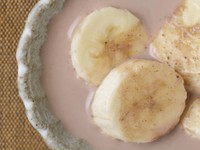 温かいココアをバナナにかけたおやつです。スライスしたしょうがを牛乳で煮出します。体が温まるので、寒い季節にぴったり。ちょっとお腹が空いたときや体が冷えたときによく作っていました。