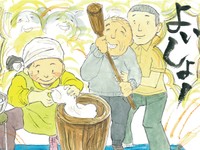 年末恒例、施設の餅つき。返し手は、今年も十和子さん、80歳。十和子さんは、ベテランボランティアさんだ。