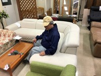 写真のソファーは値段も\18,000と安いこともあり、皆さん、肘掛け椅子よりソファーに釘付けです。財布の中身を確認されるメンバーさんもいれば、軽トラ無料貸し出しという札を指さすメンバーさんも。話がどんどん進み、これは購入か???