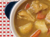 - 鶏肉は食べやすい大きさに切る。玉ねぎはみじん切り、じゃがいもは一口大、にんじんは小さめの乱切りにする