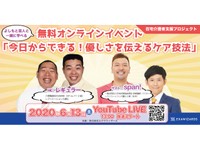 自宅でケアをしている人に向け、レクリエーション介護士の資格を持つよしもと芸人と一緒に、優しさを伝えるケア技法「ユマニチュード」を学ぶオンラインイベントが行われます。