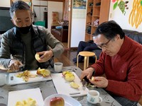 皆であーじゃない、こーじゃないと言いながら、リンゴを剥いていきました。小さなリンゴ、皮付きのリンゴ、形は色々だったけれど、メンバーさん(BLG ! では「利用者」という言葉は使いません)の笑顔も加味されて、とても美味しくいただきました。