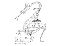 コイツだよ、コイツが委縮してるんだってさ。そうか、コイツか。で、どうすれば太るんだ? 青魚がいいらしいよ。DHAとか豊富だからって。サバとかツナとか。まいったな、魚は苦手だからな。他に何かないのか? 焼肉とかカツ丼とか。えっ、どうだろう。そうかコイツか正体は。龍の子供だ。あんまり太らして本当に龍にでもなったら厄介だな!