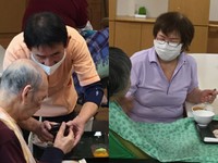 例えば、伊福さんの業務内容は、朝食の後片づけ、全フロアの消毒、利用者のリハビリ体操やレクリエーションの手伝い、午後はチェックシートに基づく点検・清掃(車いすや冷蔵庫の掃除、消耗品の補充)などです。松尾さんは、シーツ交換、食事支援、洗面用コップの消毒、食事の後片付けが主な仕事です。