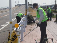 「私も2010年7月に65歳で定年退職しました。9年間、中国の現地法人で会社経営をしてきたので、これから65~70歳の間、何をやっていけばいいのか考えました。そこで自分の健康と人の役に立つことがいいと思いました。ある日、形原漁港をまたぐブルーブリッジ(形原漁港大橋)を歩いていると、橋の排水溝にダンプが落とした砂がたまり、草が生えていました。そこで草刈りや砂の撤去、ゴミ拾いを1人で始めました」