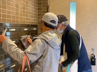出かける支度をしながら、新しいメンバーさんにスタッフが活動内容などを説明します。みんなで車に乗って、配布を担当する地域に到着です。