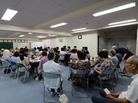 こうして立ち上がったのが「ちょっと楽しい在宅医療勉強会」です。以来、年5回・3年間の計画で、高齢者の在宅生活に関して皆が知りたいことをテーマに、専門職と住民が対等の立場で学んだり、意見交換をしたりしてきました。専門職としては、忌部さん、青山さんのほかに、ケアマネジャーや、大阪市都島区社会福祉協議会生活支援コーディネーターの佐々木さやかさん(45)も参加しています。