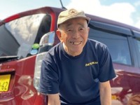 「洗車リーダー」の肩書きのメンバーさん! 長袖の上にTシャツを重ね着して「暑い〜」。でも頑張っています