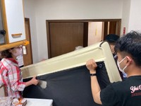そんな嬉しい意見を耳にし、いざ大移動!しかしソファーは長く、思うように室内を曲がり切れません。