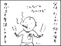レビー小体型認知症の父親をもつイラストレーターが、日々のエピソードを漫画にしました。禁煙が成功した途端に、白内障と認知症が発覚。タバコやめたせいかしらと、疑うお母さんでした。