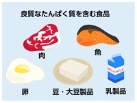 たんぱく質は、肉や魚のほか、卵、乳製品、大豆製品などに含まれています。動物性、植物性に偏らず、さまざまな食品からたんぱく質を摂ることが大事です。