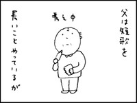 レビー小体型認知症の父親をもつイラストレーターが、日々のエピソードを漫画にしました。耳も遠く、歩行障害と言った症状があるお父さん。長く続けている短歌は、今も続けているそうです。