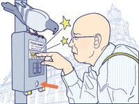 ロンドンの駅で、券売機にクレジットカードを挿入。しかし乗車券が出ない。係員を呼ぶと「暗証番号を入れろ」と言われた(その表示は無かった)。前日にはカードで買い物をし、暗証番号を入れていた。表示があったからだ。
