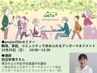 同じ12月25日午後、田辺有理子さんを講師に、介護や看護で求められるアンガーマネジメントをテーマにしたproject50sセミナーが開催されます。詳しくは下記をご覧ください。