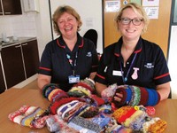 地域福祉の充実を目指してきた認知症マフの普及活動ですが、2年前から医療分野での活用も始まりました。浜松医科大老年看護学講座教授の鈴木みずえ先生は、認知症の入院患者に認知症マフを使う研究をしています。これまでは入院患者に点滴をするときなど、患者さんが自ら外してしまわないようにグローブのようなミトンをはめてきましたが、この代替えとして認知症マフに着目しました。きっかけは認知症ケアの研究を通じて交流があった、当時、山形県鶴岡市立荘内病院で認知症看護認定看護師をしていた富樫千代美さんが、入院患者の1人が赤いひもをずっと触っていることに気付いたことです。