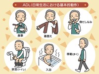 日本語では「日常生活における基本的動作(行動)」の意味です。みなさんが日常的にされている動作です。具体的には「食事・更衣・移動・排泄(はいせつ)・整容・入浴など」のことです。要介護認定の調査もこれらの動作の聴き取りが基本となります。