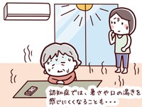 しかし、本人の発言が必ずしも現状を把握していなかったとしたらどうでしょう。今回のように脱水が起きていても「口の渇き」を感じないことや、脳の変化から温度への反応や調節がうまくいかなくなることは、認知症のケアではよくあることです。認知症は脳変化を伴う病気なので、その部分の働きが低下すると、感覚として「暑い!」と感じなくなるのです。